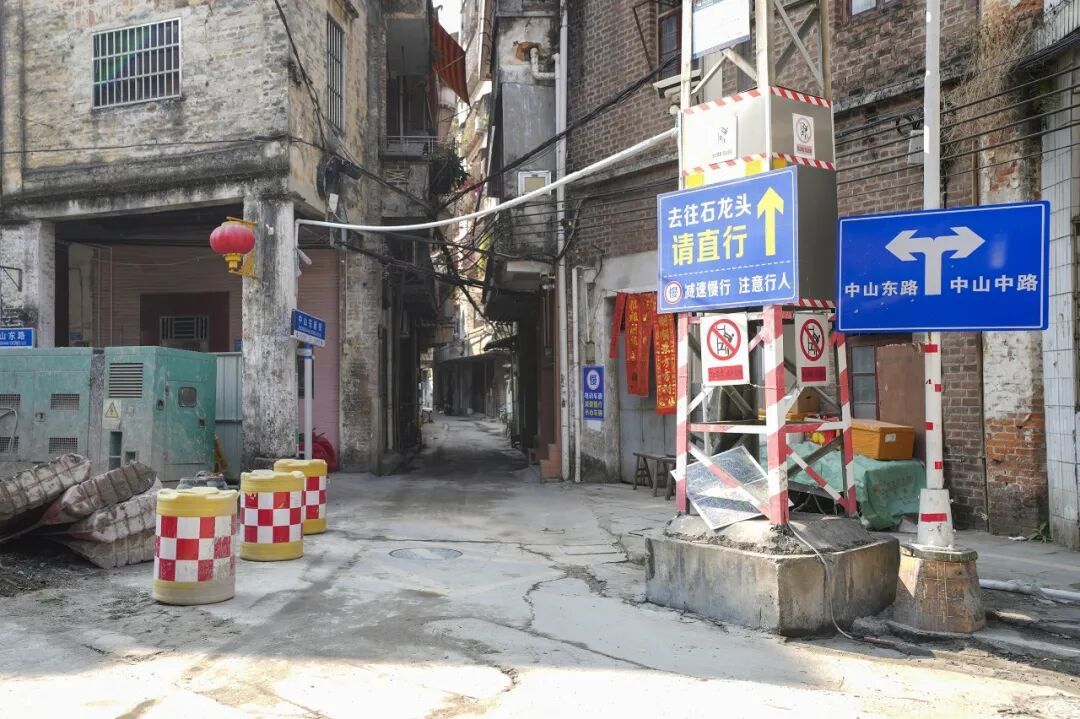 当前,石龙镇中山路历史文化街区保护提升项目正稳步推进中,各项施工工序有序开展。为保障项目顺利实施,日前,石龙镇对沿江东路、中山中路往中山东路方向路段实施围蔽施工。施工期间,项目现场提前设置了清晰醒目的交通标识,科学规划绕行路线,引导车辆从新街往面街方向有序通行,最大限度降低施工对群众日常出行的影响。
