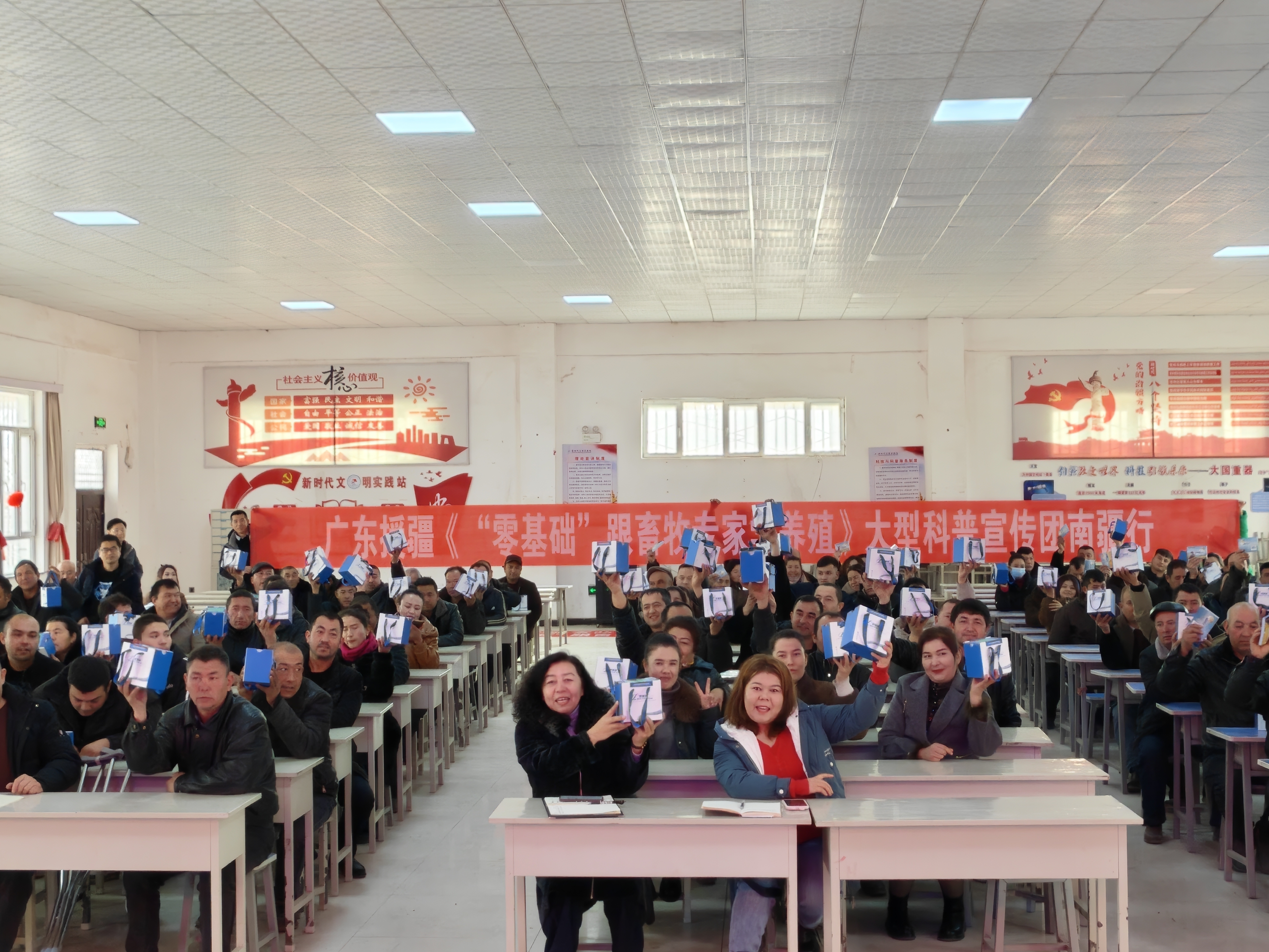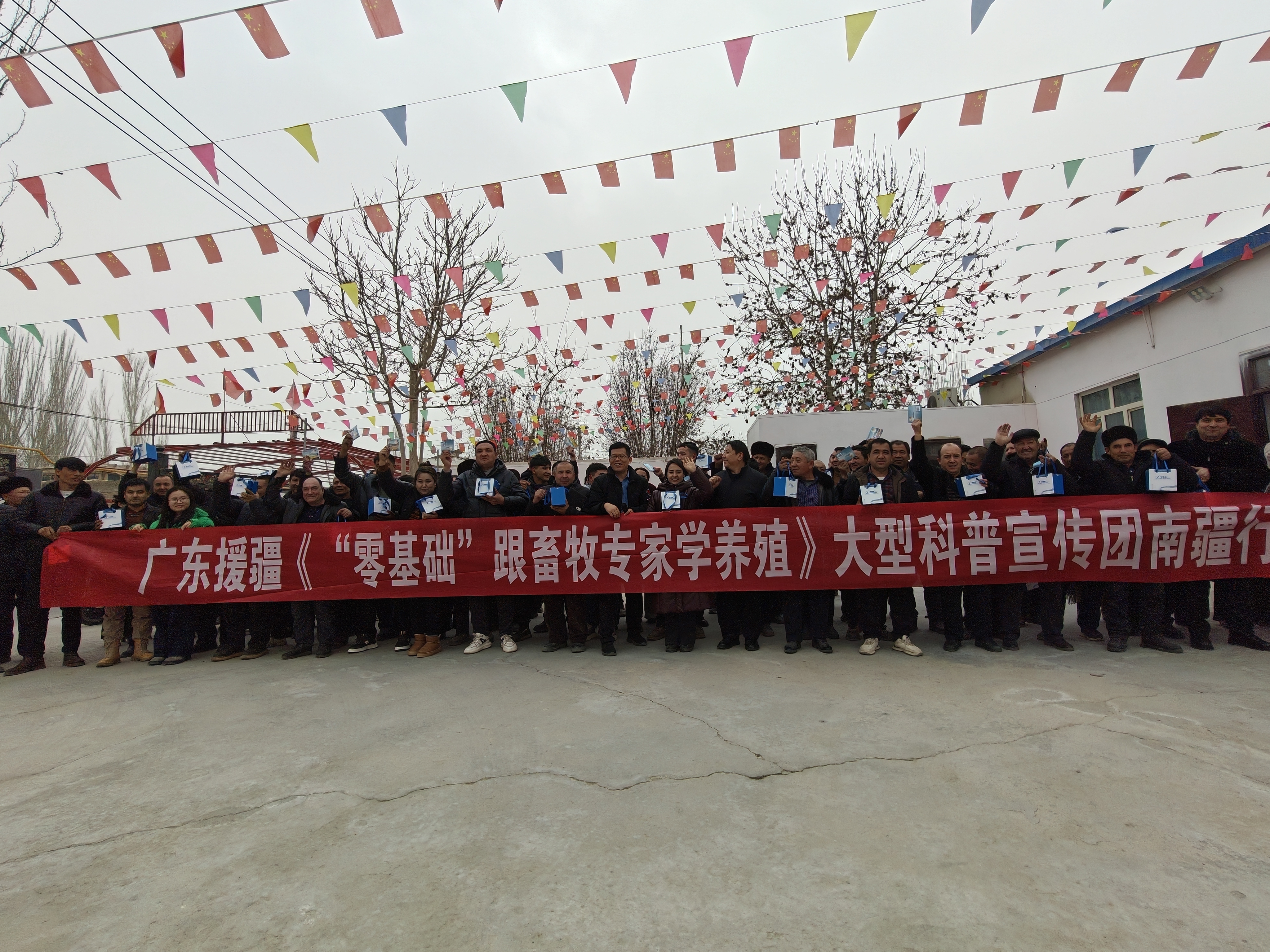 本次广东援疆南疆行活动通过专家授课、现场答疑、技术资料发放等形式,帮助农牧民系统学习了科学养殖技术,为乡村振兴注入科技动能。科技扶贫团队的首席专家甘尚权教授,带领团队奔赴南疆四地州“脱贫一线”, 穿梭于圈舍与农牧民家中,总行程超过2万公里,申请人团队先后开展了各类技术讲座13余次,现场指导30余次,累计受众农牧民达3000余人,在南疆四地州推广图书近90,000册,现场农牧民拿到图书后纷纷表示这套书图文结合,把养殖关键知识讲得清楚明白,从配种、育幼到日常管理、饲料调配、防病治病,内容全面实用,正好满足大家学技术的需要,书是口袋开本(64K)方便携带,汉维双语对照,特别是这套书按一种家畜的完整养殖周期来编排,跟着时间走,方便对照操作,还配有视频和电话互动板块,能随时找专家答疑,帮农牧民快速学会关键技术,能够帮助养殖户学到真本事!当地驻村工作队也对这套图书的应用情况做出了评价,认为广东海洋大学的专家一行充分发挥了专业优势,采取“入户发放+集中培训+个案指导”相结合的方式,打通了专业技术与基层应用“最后一公里”,为南疆贫困地区畜牧养殖产业注入了新鲜的知识动力,提升了农牧民科学素养。